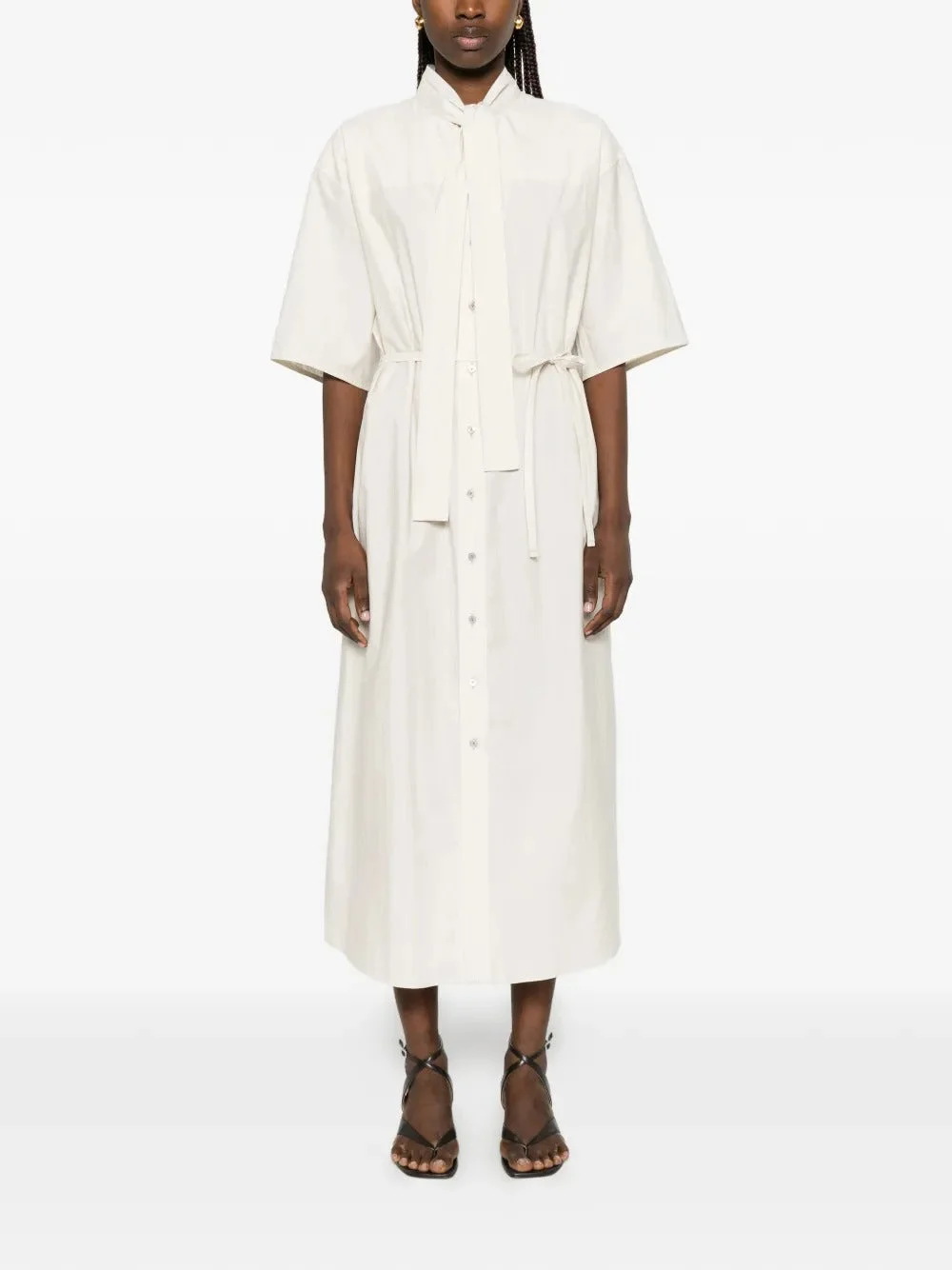 Front button fastening Self-tie fastening Shirt collar Midi length 80% Cotton/ 20% Silk Made in Romania Style: DR1156 LF1500 WH048