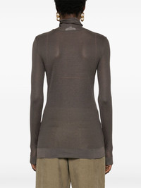 ALL SALE ITEMS ARE FINAL SALE Ribbed knit Trompe l'oeil print Mock neck Long sleeves Straight hem Main Fabric: 88% Viscose (Rayon) 12% Silk Made in France Style: TO1279 LK1017 BR449