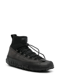 Knitted construction Waterproof Panelled design Vibram sole Top drawstring fastening Pull-tab at the heel Logo patch to the front Round toe Sock-style ankle Branded leather insole Ankle-length Wrap on sole Outer: 100% Calf Suede Lining: 100% Calf Leather Sole: 100% Rubber Made in Portugal Style: FO0129 LL0116 BK991