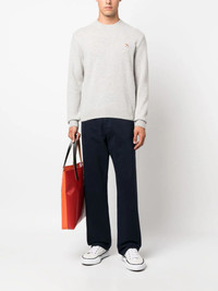 ALL SALE ITEMS ARE FINAL SALE FINAL SALE Sale items are final and cannot be exchanged or returned Knitted construction Ribbed-knit edge Melange effect Signature fox motif Logo patch at the chest Crew neck Long sleeves Ribbed cuffs and hem Straight hem 100% WOOL Made in Portugal Style: LM00813KT1006-H120 LIGHT GREY
