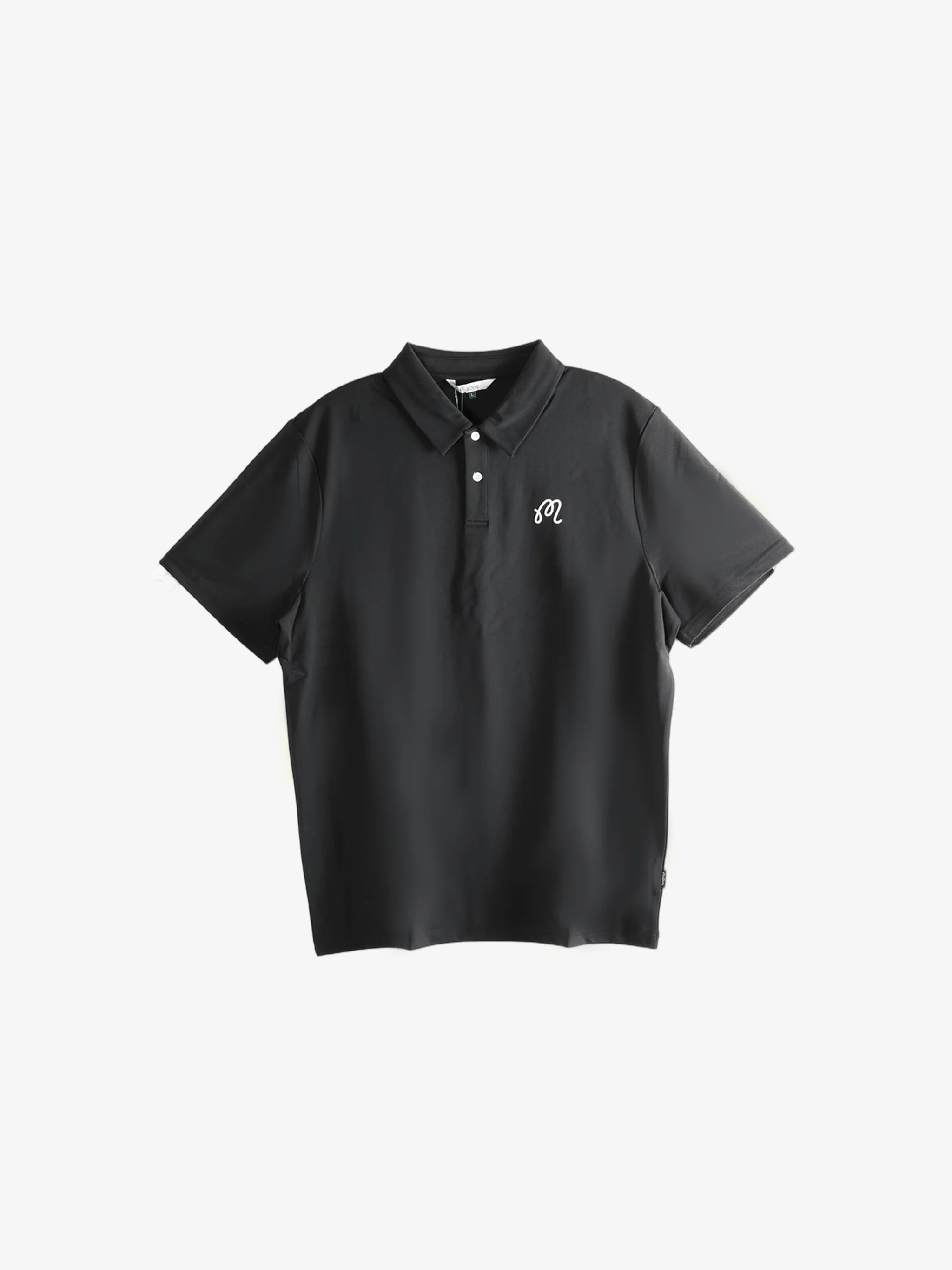 Embroidered M script logo to left chest Woven Malbon flag label to the side seam 2 Button placket 95% Nylon/ 5% Lycra Made in United States Style: M 9402 BLK