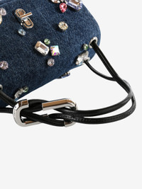 Denim bag with gem accents inspired by Marc's runway Interlocking J Marc hardware Metal turnlock closure and leather strap Day-to-night style with Dual detailing 98% Cotton/ 2% Polyester Made in Vietnam Style: 2P5HSC050H03 495