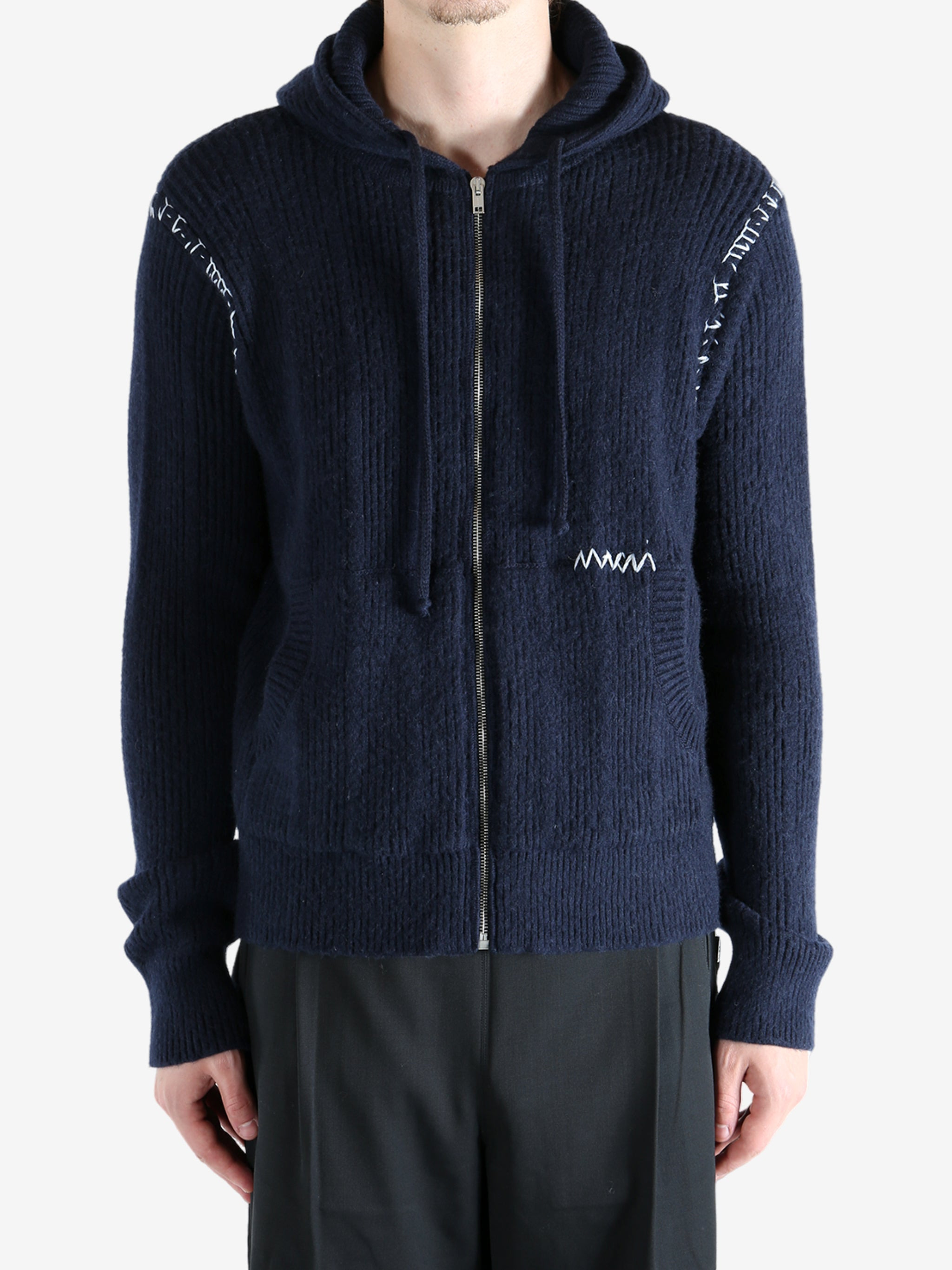 Ribbed knit Zip fastening Hooded neckline Embroidered logo Shoulder-seam detailing 100% Wool Made in Italy Style: CDMG0171A0 UFZ351 00B90