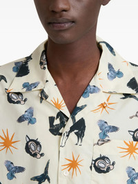 OFF-WHITE POPLIN BOWLING SHIRT WITH WOLVES, RAVENS AND DOVES PRINT