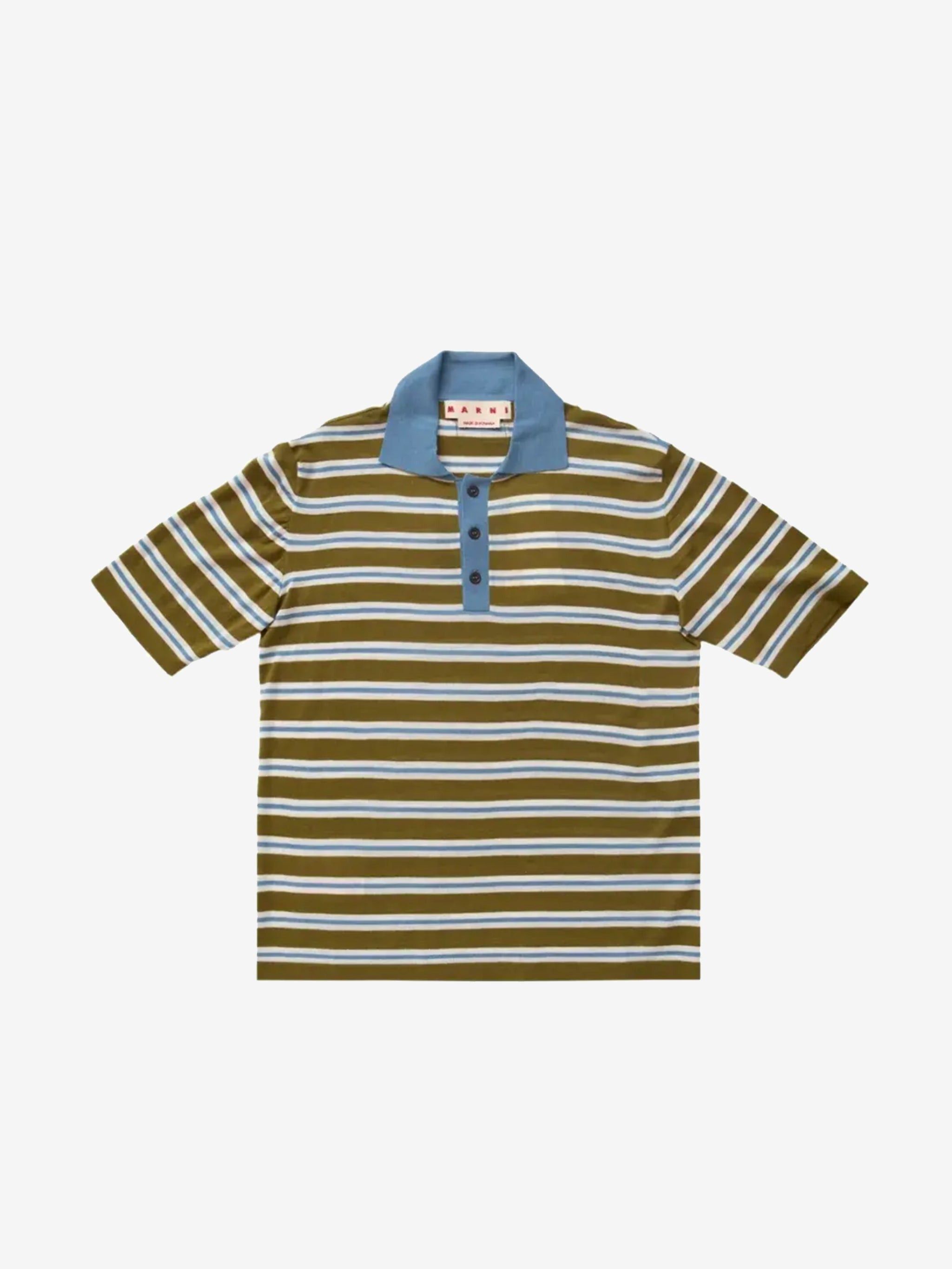 BROWN AND BLUE STRIPED WOOL POLO SHIRT