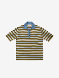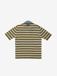 Horizontal stripe pattern Ribbed knit Short sleeves Polo collar Button placket fastening 100% Virgin Wool Made in Vietnam Style: POMG0081EQ UFW537 RGV38