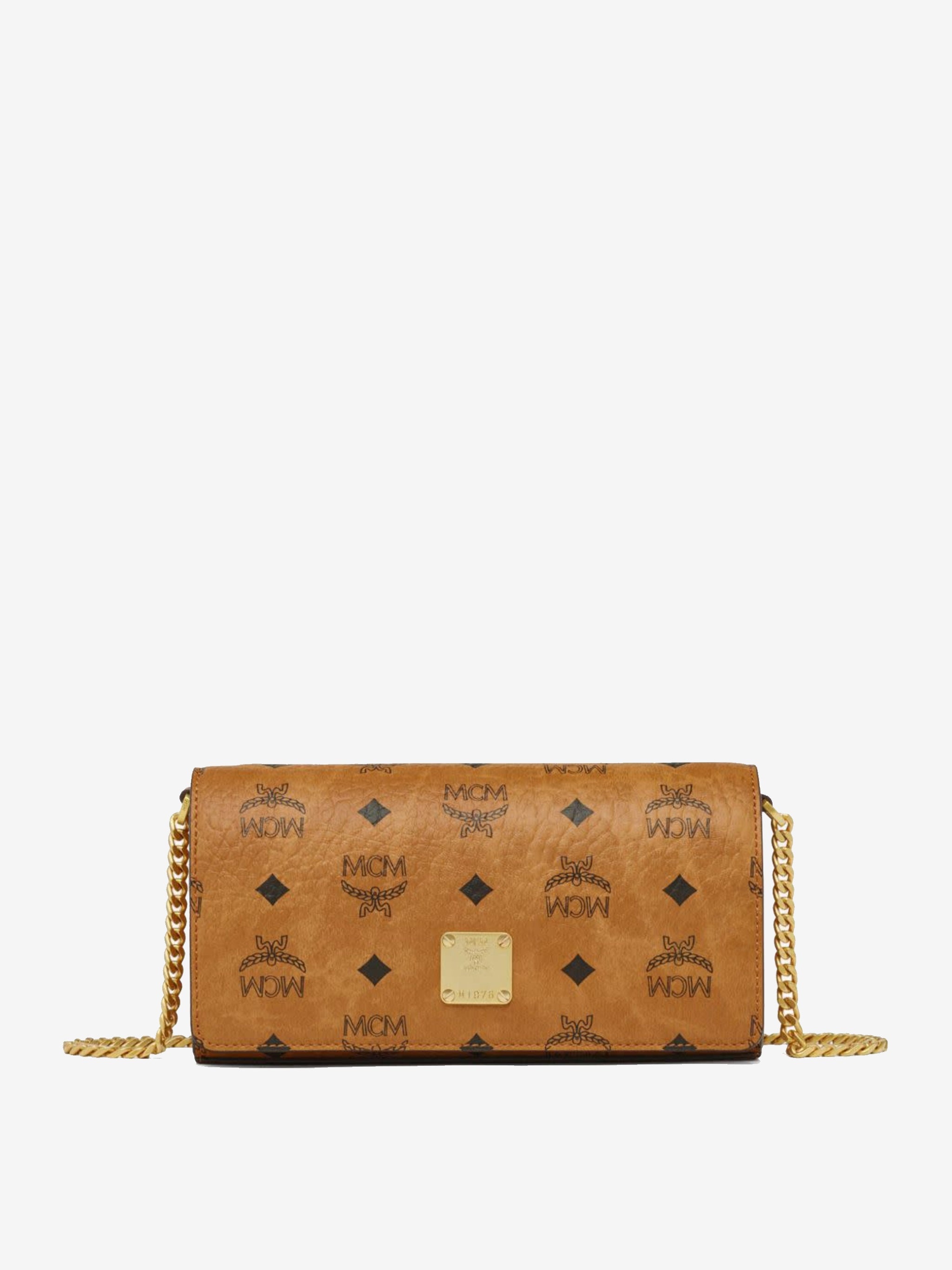 Foldover top with magnetic fastening All-over logo print Gold-tone logo plaque Chain-link shoulder strap Main compartment Outer: 100% Canvas/ 100% Nappa Leather 100% 24kt Gold Plated Brass Lining: 100% Microfibre Made in South Korea Style: MWREATA01 COGNAC