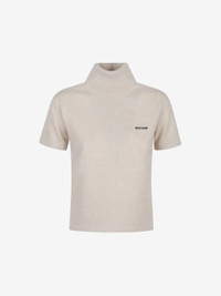 Straight fit Short sleeves Ribbed turtleneck Semi-raglan shoulder Intarsia logo 100% Cashmere Made in Italy Style: MMR452 18A9 F0036