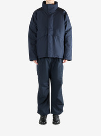 Short stand collar jacket Waterproof fabric Recycled polyester ripstop lining Ribbed cuff cold protection Outer: 100% Polyester Filling: 72% Down/ 20% Rayon/ 8% Other Feather Made in China Style: S25FA058U NAVY
