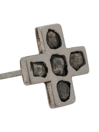 Please Note: Earrings are sold as singles and not as a pair. This item is made with a naturally occurring element and will vary from the photograph you see. Each piece is unique and this is what makes it special Dimensions: (W × H): 12 mm × 12 mm Weight: 3 grams PA: Polished Sterling Silver DIA: Rough Diamond Diamond; Silver; Dirty Finish; Mega Pave; Rough Stones Made in Indonesia Style: 1135-11-PA+DIA