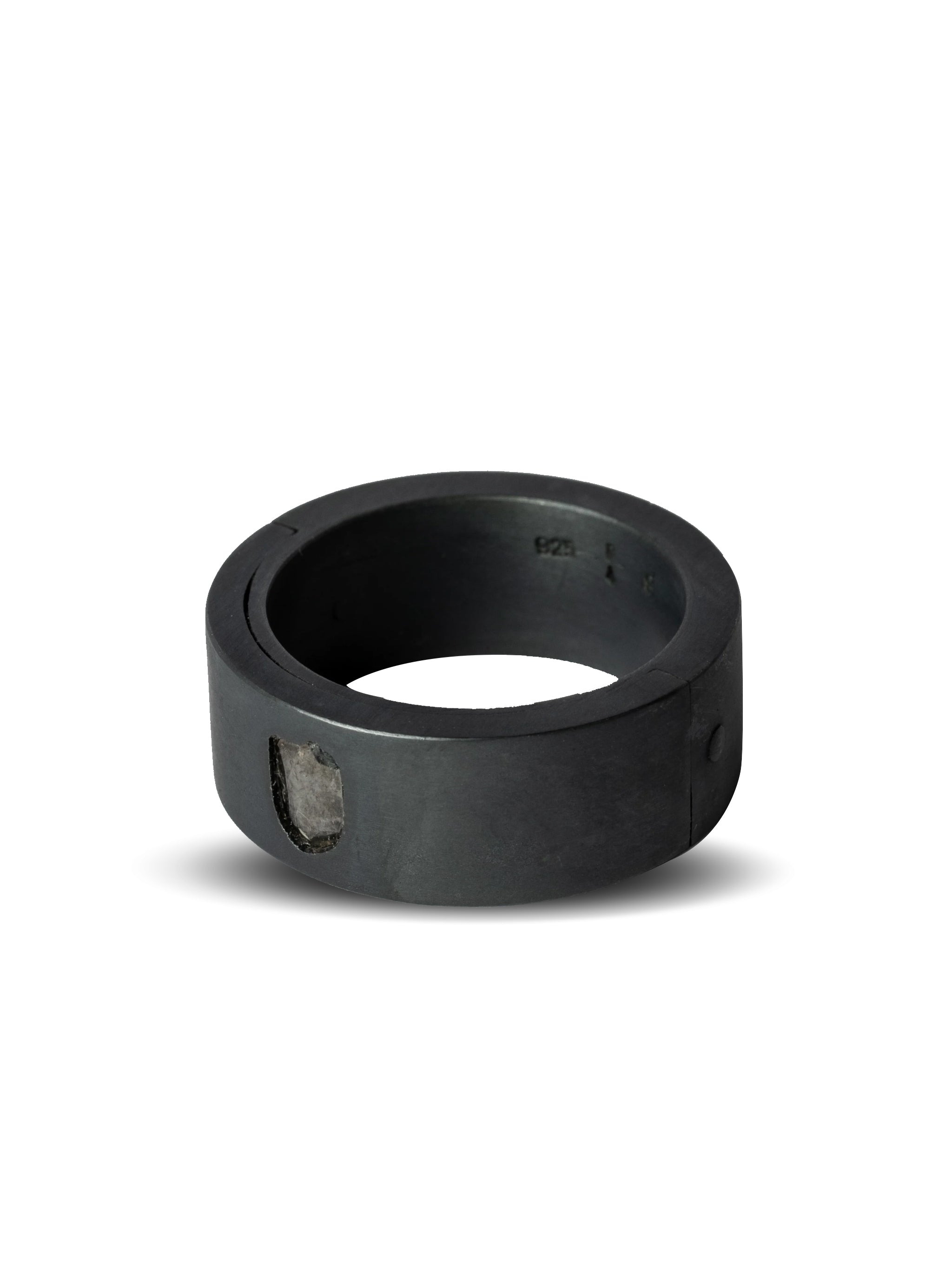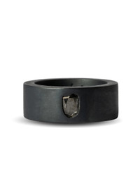ALL SALE ITEMS ARE FINAL SALE Dimensions: Ring Band Width: 9 mm (size 9) Ring Band Thickness: 3 mm (size 9) Weight: 20 grams (size 9) KA: Black Sterling DIA: Rough Diamond Diamond/ Silver/ Black Finish/ Rough Stones/ Slab Stones Made in Indonesia Style: 801-10-KA+DIA