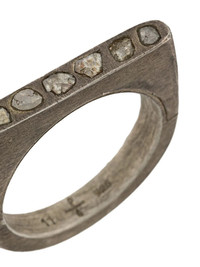 Dimensions: Ring Face/Top (WxL): 4 mm × 27 mm Ring Band Thickness: 3 mm Weight: 11 grams(size 9) DA: Dirty Serling Sterling Silver DIA: Rought Diamond Diamond/ Silver/ Dirty Finish/ Mega Pave/ Rough Stones Made in Indonesia Style: 1101-11-DA+DIA