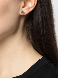 Please Note: Earrings are sold as singles and not as a pair. This item is made with a naturally occurring element and will vary from the photograph you see. Each piece is unique and this is what makes it special Dimensions: Diameter: 7 mm Pin Thickness: 1 mm / 19 gauge Weight: 2 grams Diamond; Gold; Sterling Silver Made in Indonesia Style: 1035-9-DA18K+DIA
