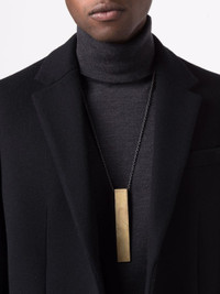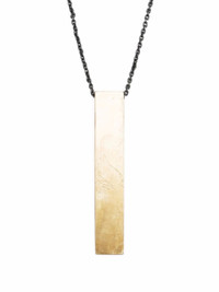 Dimensions: Pendant Size (WxH) 20 mm × 120 mm Chain Length: 740 mm Weight: 108 grams Cid Gold Brass Substrate Is Electroplated With 18K Gold Dipped Into Acid To Create The Subtly Destroyed Surface Black Sterling Is A Surface Oxidation Of Sterling Silver Brass/ Gold Plated/ Acid Finish Made in Indonesia Style: 1406-1-AG+KA