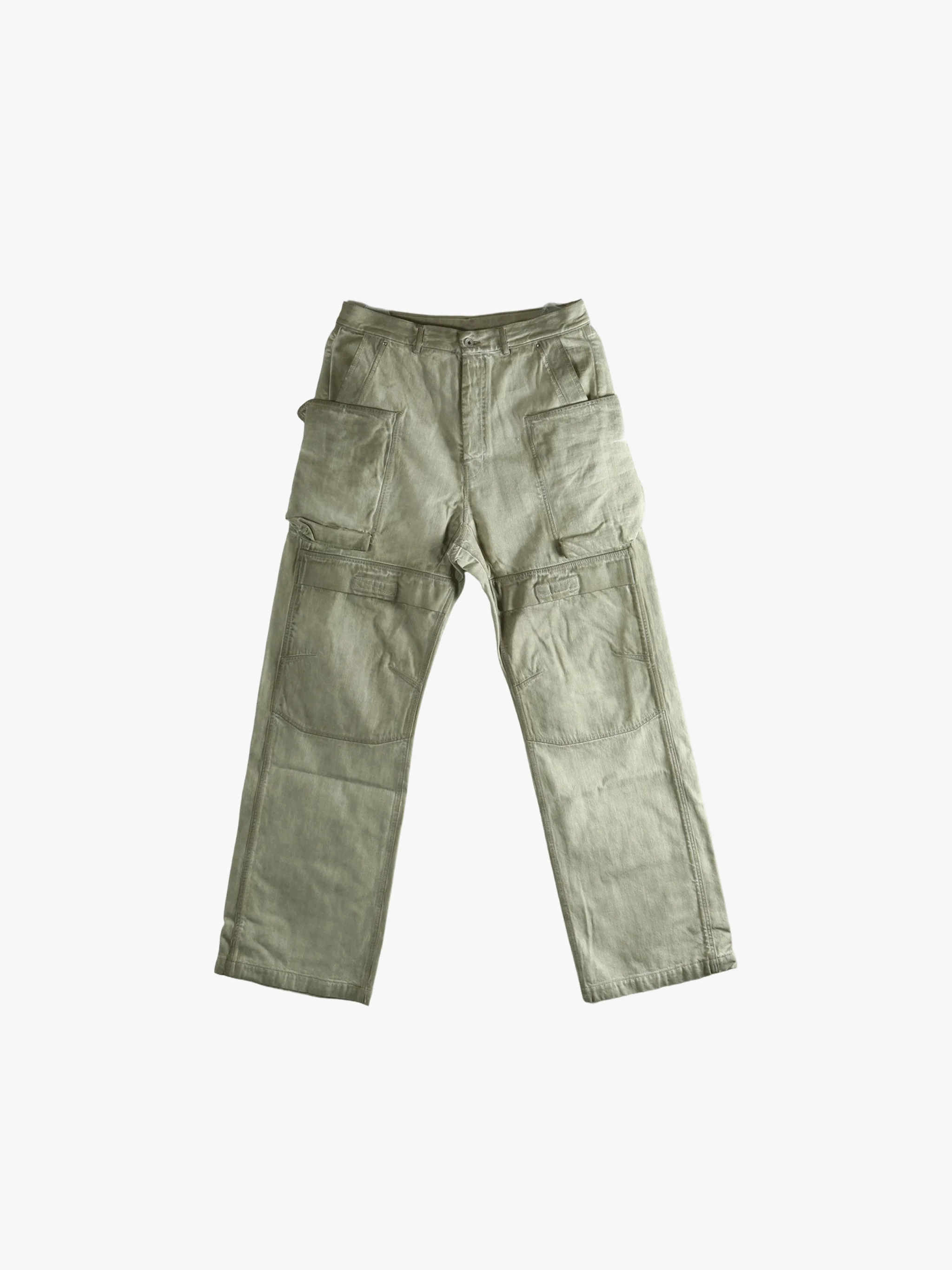 Low-rise and a loose fit Multiple large utility pockets on the thighs and lower legs with flaps topstitching Concealed zipper fly with a top button and belt loops 100% Cotton Made in Italy Style: DU01F4368 DSN 138