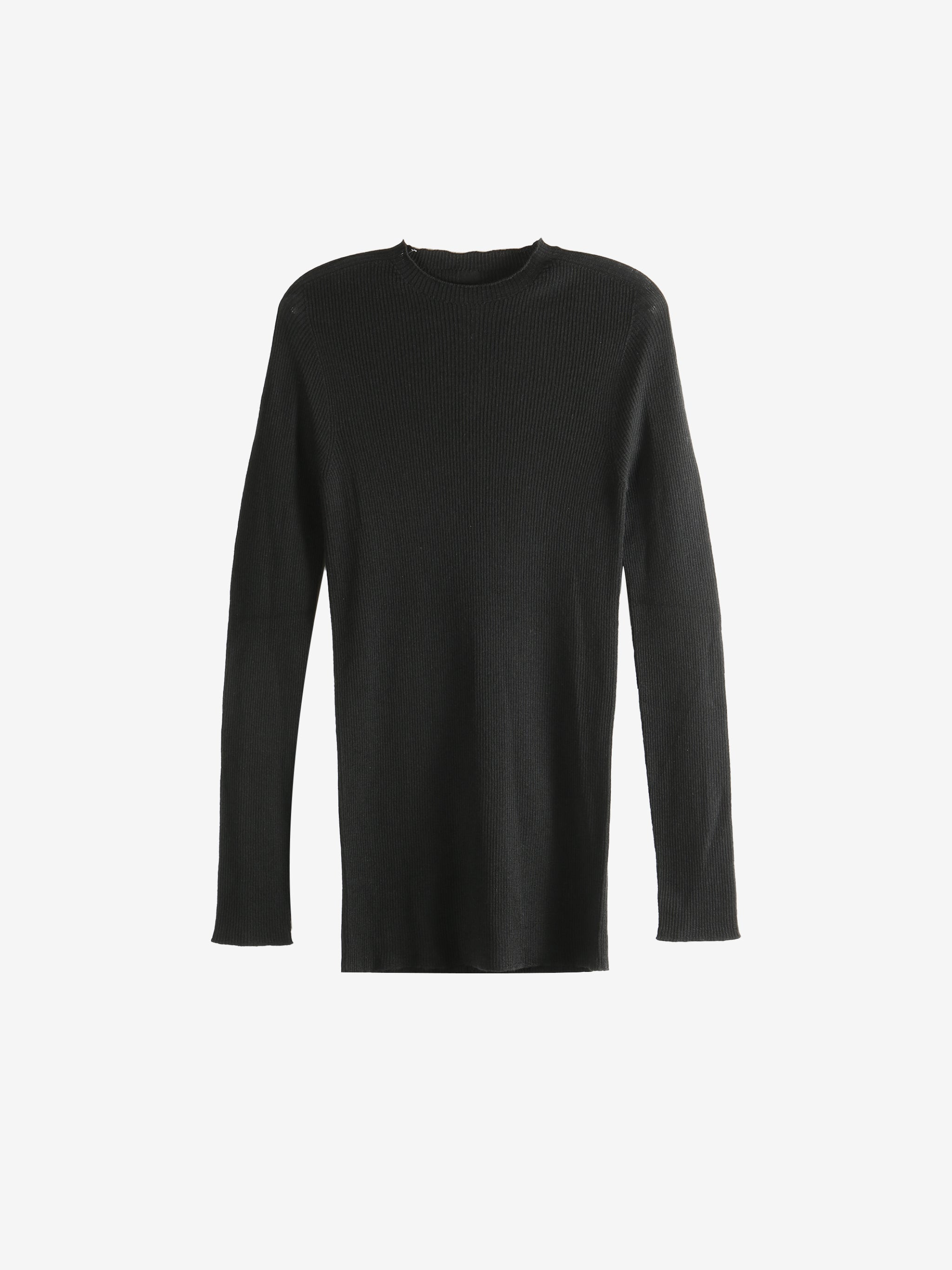 Black Temple Ribbed Round Neck Sweater