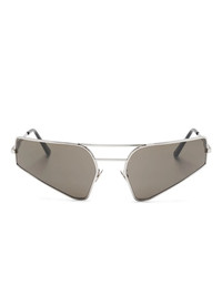 Nose pads Straight arms Curved tips Mirrored geometric design Futuristic lens shape Oversized frame Includes protective case 100% Stainless steel/ 100% Nylon Made in Italy Style: RG0000015 GSLVB 1809