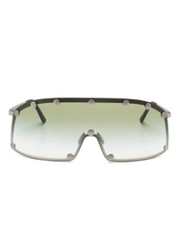 Shield style Brown nylon lens Adjustable rubber nose pads Acetate temple tips Includes leather pouch 100% Stainless steel Made in Italy Style: RG0000001 GSLVBS 1825D