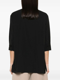 ALL SALE ITEMS ARE FINAL SALE Oversized button up shirt Covered placket Elbow-length sleeves Side slits at hem 60% Viscose, 40% Virgin Wool Made in Italy Style: 5928 W1973 BLK