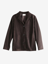 Featuring notch lapel Side seam pockets Horn button closure Outer: 100% Sheepskin Leather Lining: 100% Silk Made in Italy Style: 8241 L269 DBR