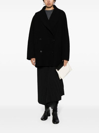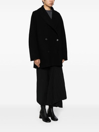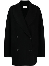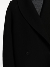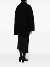 Black oversized relaxed fit jacket Foamy wool and cashmere Raglan sleeves Exaggerated shawl collar Exposed 4-button closure Italian rear vents Straight hem Outer: 75% Virgin Wool/ 20% Polyamide/ 5% Cashmere Lining: 100% Silk Made in Italy Style: 5887 W1439 BLK