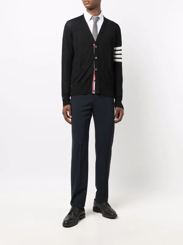 THOM BROWNE - Men Classic 4 Bar Merino Wool V-Neck Cardigan