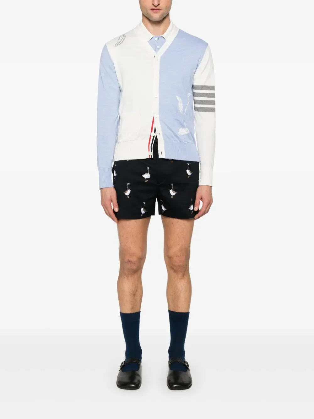 THOM BROWNE - Men Funmix Feather Jersey Intarsia High V Neck Cardigan