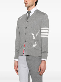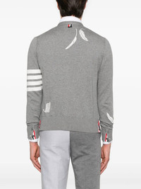 THOM BROWNE - Men Intarsia 4 Bar Stripe High V Neck Cardigan