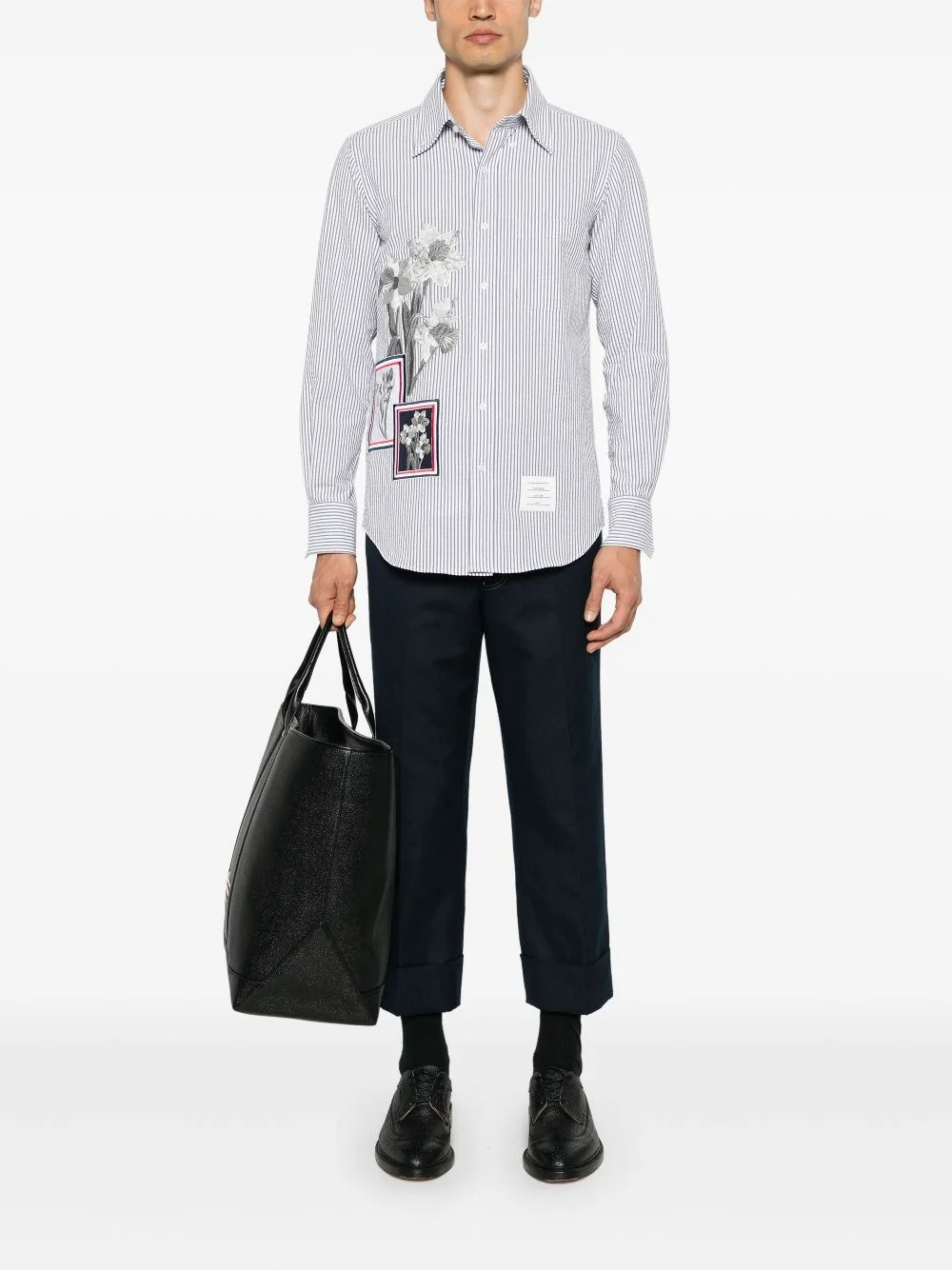 THOM BROWNE - Men Straight Fit L/S BD W/Satin Fill Stitch Flowers With Applique Shirt
