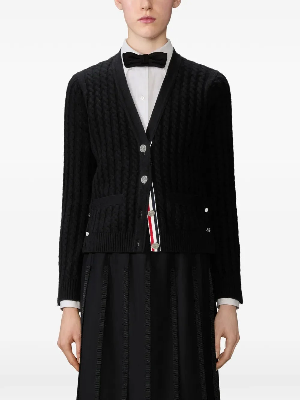 THOM BROWNE - Women Baby Cable Stitch Classic V Neck Cashmere Cardigan