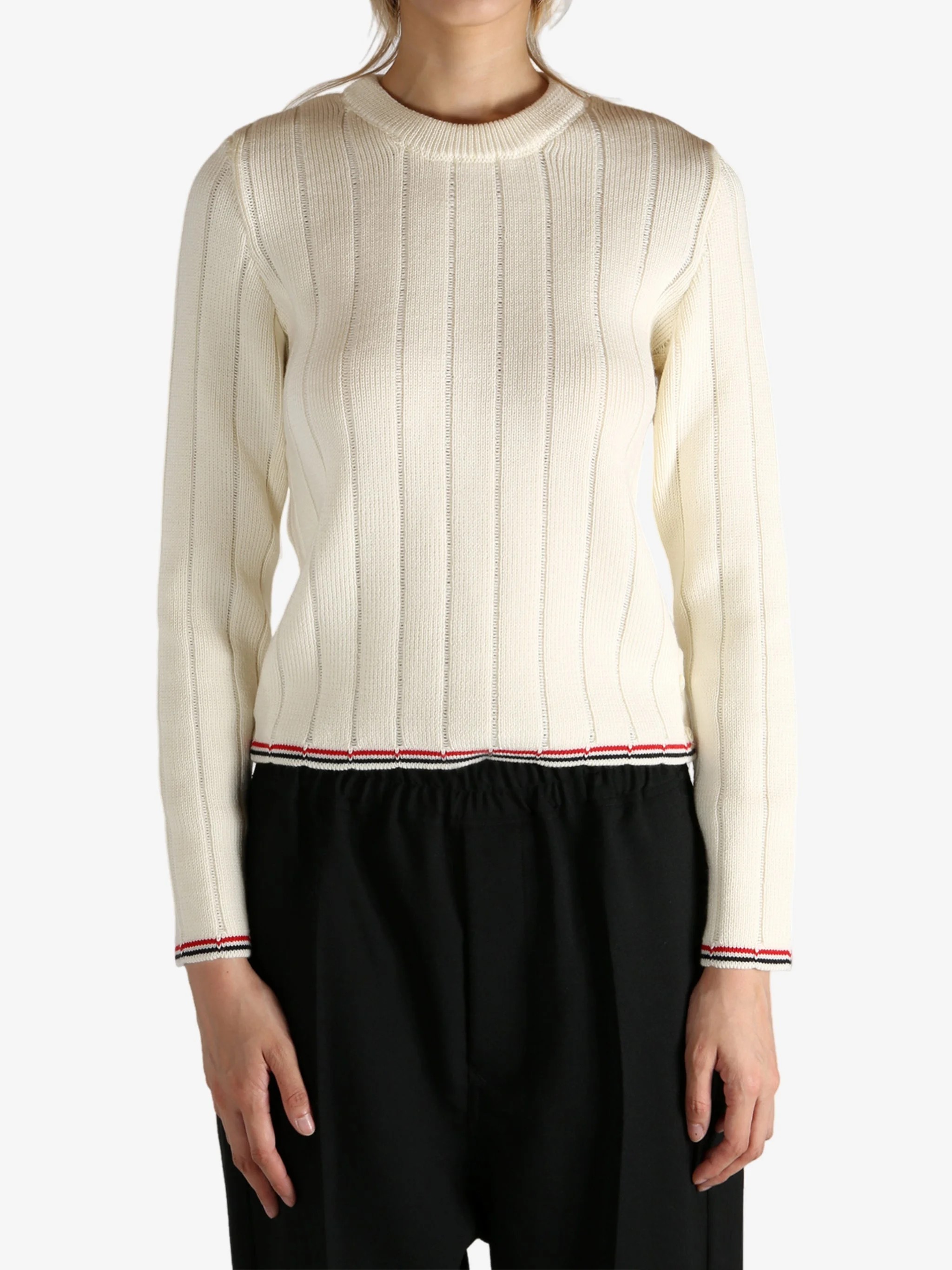 THOM BROWNE - Women Ladder Full Needle Rib Stitch Crew Neck Knitwear