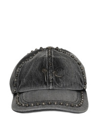 Studded Denim Cap in Black