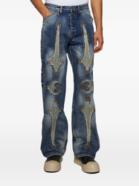 TC BONE LEATHER DENIM JEANS