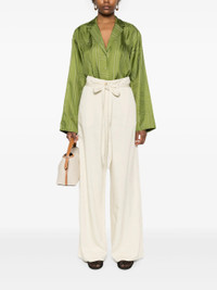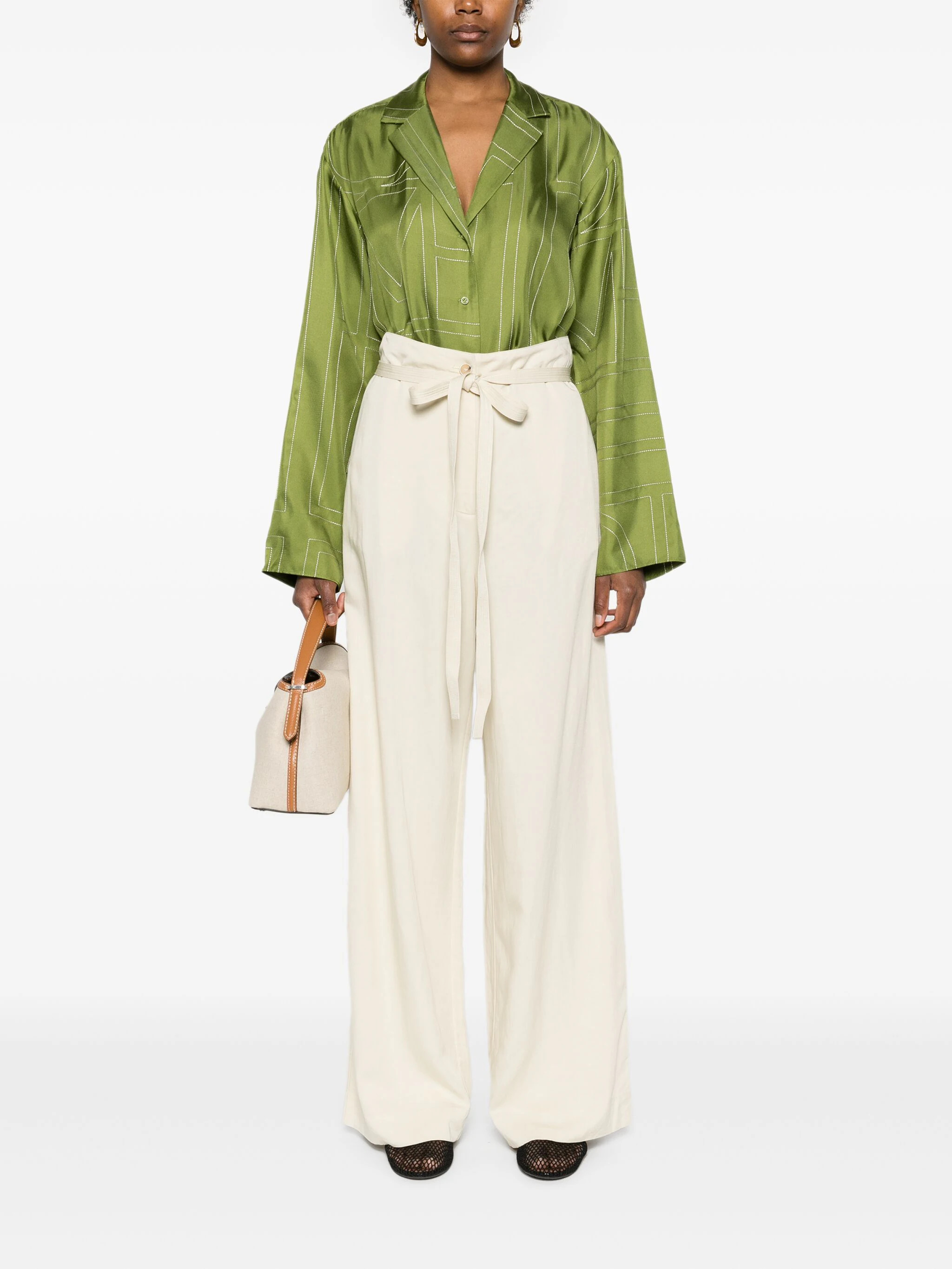 ALL SALE ITEMS ARE FINAL SALE Loose trousers Adjustable waist strap Flared Twill weave Belt loops Two side inset pockets Front button and zip fastening 100% Viscose/ 100% Linen/Flax Made in China Style: 243-WRB0201-FB0193 087
