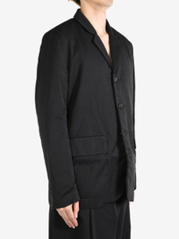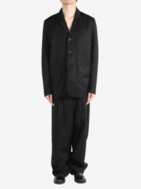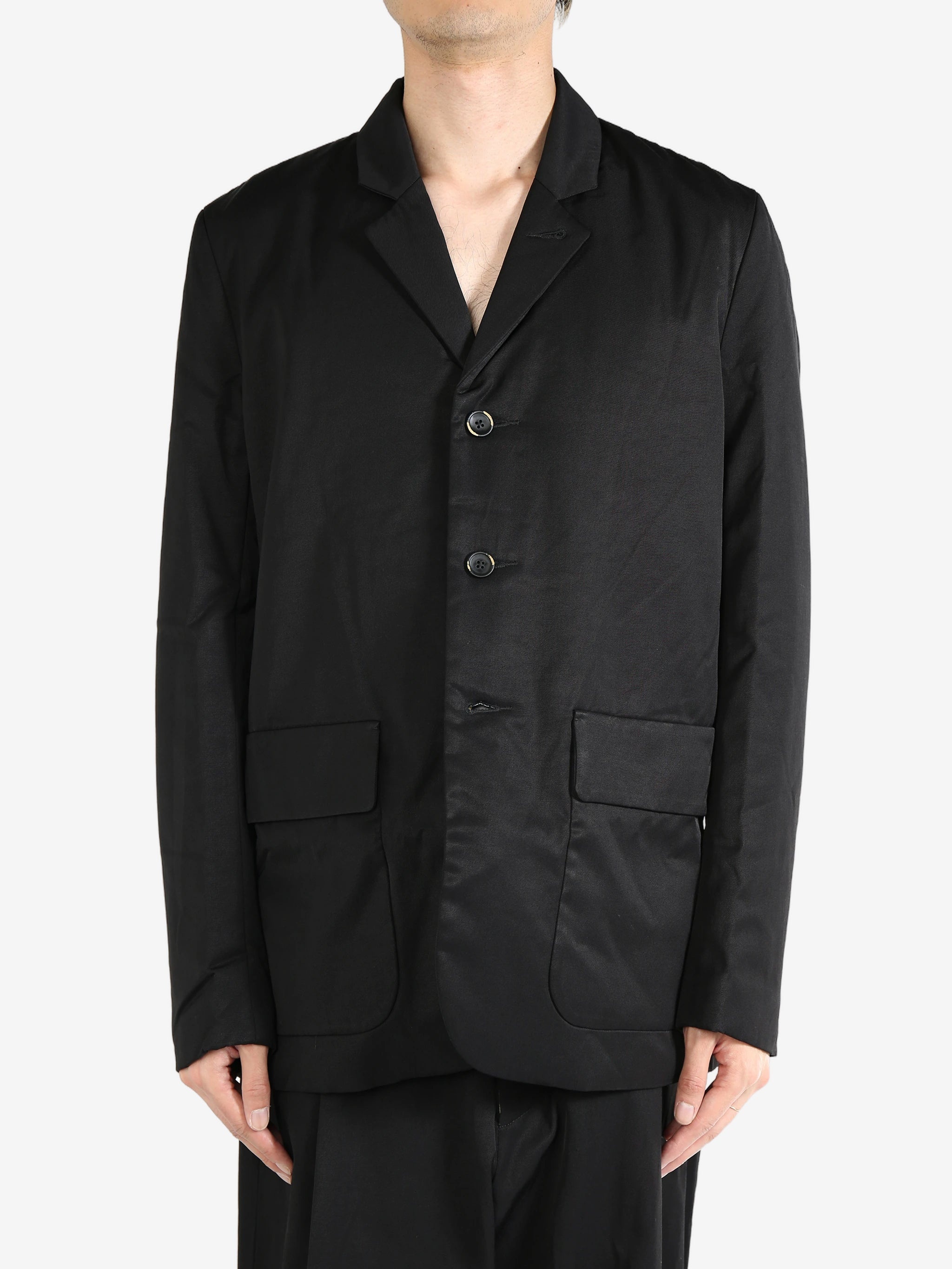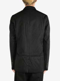 ALL SALE ITEMS ARE FINAL SALE Black blazer Notched lapel Front flap side pockets Striped lining Buttoned cuffs 54% Viscose rayon, 46% Cotton 50% Viscose rayon, 50% Cuprammonium Rayon Made in Italy Style: UM6514 UW900