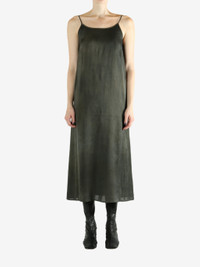 Round neckline scoop back Adjustable thin shoulder straps Slightly flared bottom Ombre effect Ankle length 94% Silk/ 6% Elastane Made in Italy Style: UW5084 UW890 ANAYA