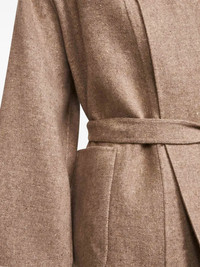 Open front Shawl collar Long sleeves Dropped shoulders Patch pockets Belted waist 57% Cashmere/ 30% Viscose/ 13% Silk Made in China Style: UW6027 UW200 KOBINA