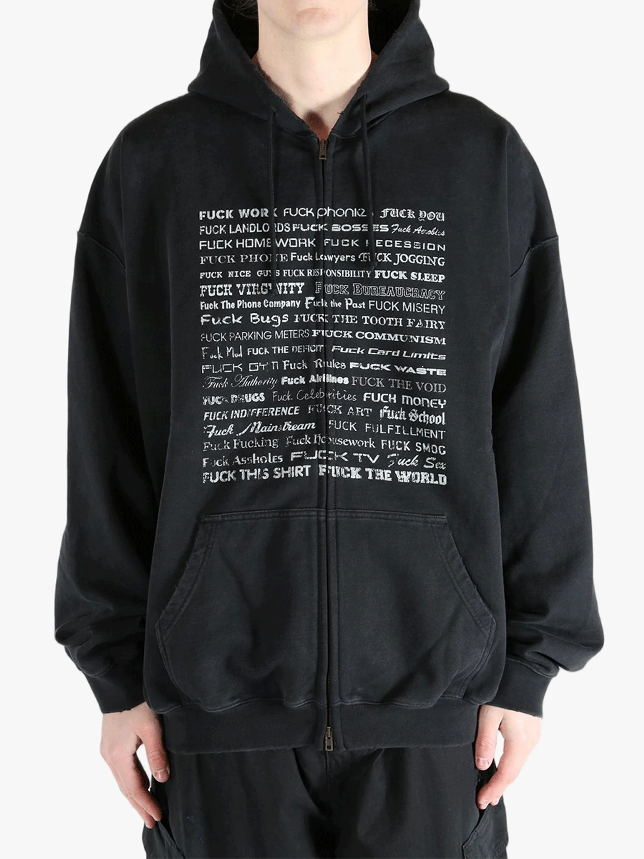 VETEMENTS - Men Fuck Everything Zip-Up Hoodie