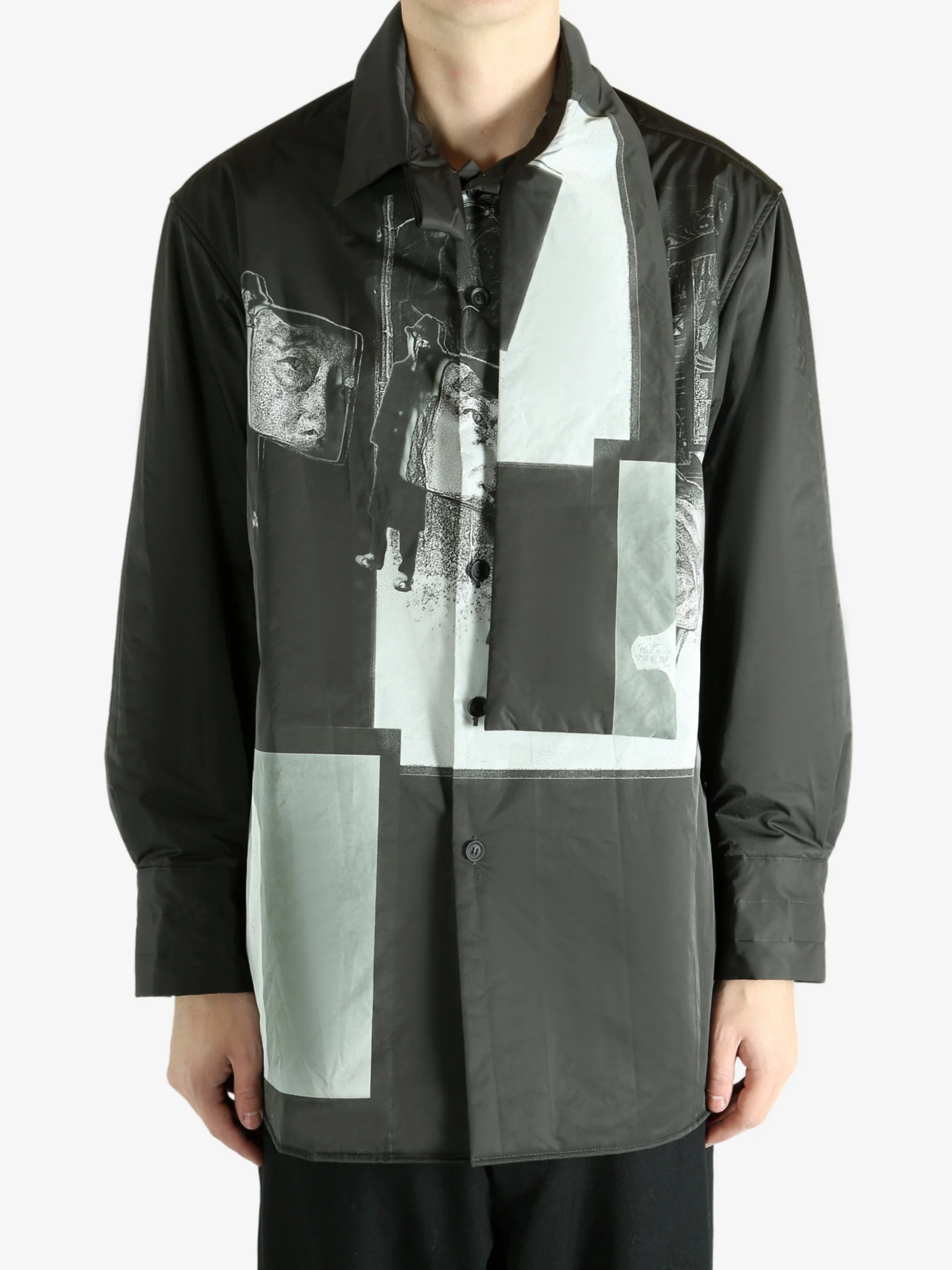 ALL SALE ITEMS ARE FINAL SALE Padded stole blouse with smooth twill texture Uses polyester in warp Uses polyester in weft Original collage design inkjet printed in Kyoto Exceptional craftsmanship and distinctive aesthetic 100% Polyester Made in Japan Style: HL B53 914 1 03