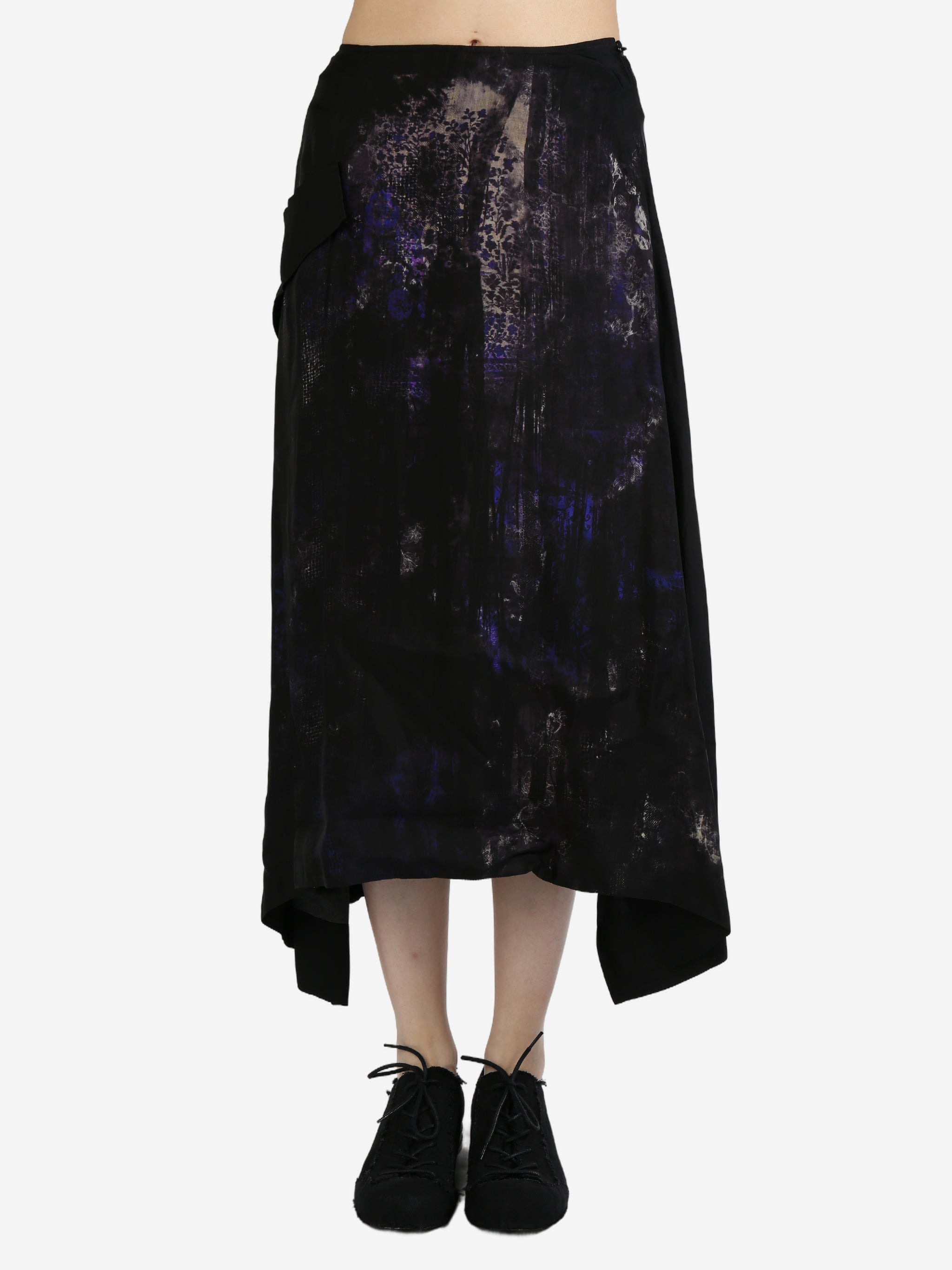 ALL SALE ITEMS ARE FINAL SALE Glossy cupro fabric Patchwork of global vintage floral patterns Exposed pocket design on the right side Asymmetric drapery Balanced weight fabric ideal 100% Cupro Made in Japan Style: YB S05 228 2