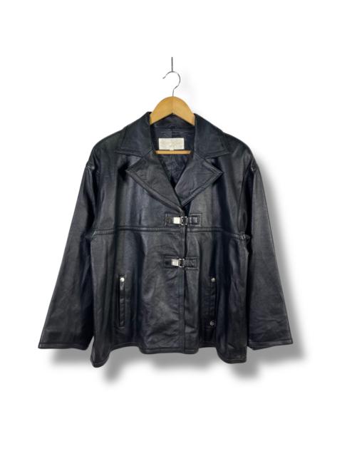 Rare! Vintage Courreges Paris Buckle Double Collar Leather Jacket