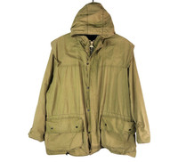 Vintage Barbour A5 Lined Durham Distressed Parka Hooded Jacket Tag: Barbour Durham Made in england Size stated Large measurements armpit 26. inches, Shoulder width 21 inches top of back collar to bottom 31.5 inches, Shoulder to end of sleeve 23 inches. condition: used vintage condition 7/10 , got holes ripped & the color has faded, (please refer photo) main colour : olive green (faded naturally) Additional: ●All Measurements were been measured flat on the floor. ●Please don't expect this item condition is 100% like new unless we have mention it. ●Please do not hesitate to contact us if you have any inquiries.Its our great pleasure to have conversation with customers. ●no return & refund if its do not meet your demand, please look carefully on details given. SHIPPING & HANDLING INFORMATION : # we shipped worldwide except ISRAEL. It's safe and you will be given tracking number for all item # we shipped items within 48 hours after receiving a cleared payment on Pay Pal (except for public holidays and weekends) and please do make sure your address is correct. # Please leave us your contact phone number, as the shipping company always need the phone number to help delivering. # we do offer combine shipping to save on postage cost. Do please contact us for combine postage after final purchases for combine shipping. Shipping cost: 1) DHL EXPRESS : $36 (ETA 3-5 DAYS TO ARRIVE) (PLEASE REQUEST IF THE ITEM NEEDED TO BE EXPEDITED - ADDITIONAL COST REQUIRED;, UNLESS, WE USED REGISTERED MAIL SERVICE ) 2) REGISTERED MAIL INTERNATIONAL SERVICE : $20 (ETA 14-21 DAYS TO ARRIVE) Thank you very much for your visit