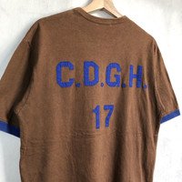 Vintage AD2005 CDGH Comme Des Garcons Homme Faded tshirt Tag: comme des garcons homme Size state medium measurements were armpit 20.5 inches, Shoulder were 20.5 inches, top of back collar to bottom 28 inches, condition: good used condition no hole, rip or heavy stain, just faded around the collar area (please refer photo) main colour : brown Additional: ●All Measurements were been measured flat on the floor. ●Please don't expect this item condition is 100% like new unless we have mention it. ●Please do not hesitate to contact us if you have any inquiries.Its our great pleasure to have conversation with customers. ●no return & refund if its do not meet your demand, please look carefully on details given. SHIPPING & HANDLING INFORMATION : # we shipped worldwide except ISRAEL. It's safe and you will be given tracking number for all item # we shipped items within 48 hours after receiving a cleared payment on Pay Pal (except for public holidays and weekends) and please do make sure your address is correct. # Please leave us your contact phone number, as the shipping company always need the phone number to help delivering. # we do offer combine shipping to save on postage cost. Do please contact us for combine postage after final purchases for combine shipping. Shipping cost: 1) DHL EXPRESS : $30 (ETA 3-5 DAYS TO ARRIVE) (PLEASE REQUEST IF THE ITEM NEEDED TO BE EXPEDITED - ADDITIONAL COST REQUIRED;, UNLESS, WE USED REGISTERED MAIL SERVICE ) 2) REGISTERED MAIL INTERNATIONAL SERVICE : $15 (ETA 14-21 DAYS TO ARRIVE) Thank you very much for your visit