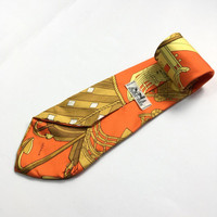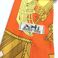 Rare Hermes Baroque Ledoux Tie 100% Silk France Vintage Tag: Hermes Made in France One size Lenght measurements 54.5 inches, main colour: golden orange condition: good used condition 7.5/10 , got 1 pinhole & few marks (please refer photo) Additional: ●All Measurements were been measured flat on the floor. ●Please don't expect this item condition is 100% like new unless we have mention it. ●Please do not hesitate to contact us if you have any inquiries.Its our great pleasure to have conversation with customers. ●no return & refund if its do not meet your demand, please look carefully on details given. SHIPPING & HANDLING INFORMATION : # we shipped worldwide except ISRAEL. It's safe and you will be given tracking number for all item # we shipped items within 48 hours after receiving a cleared payment on Pay Pal (except for public holidays and weekends) and please do make sure your address is correct. # Please leave us your contact phone number, as the shipping company always need the phone number to help delivering. # we do offer combine shipping to save on postage cost. Do please contact us for combine postage after final purchases for combine shipping. Shipping cost: 1) DHL EXPRESS : $25 (ETA 3-5 DAYS TO ARRIVE) (PLEASE REQUEST IF THE ITEM NEEDED TO BE EXPEDITED - ADDITIONAL COST REQUIRED;, UNLESS, WE USED REGISTERED MAIL SERVICE ) 2) REGISTERED MAIL INTERNATIONAL SERVICE : $15 (ETA 14-21 DAYS TO ARRIVE) Thank you very much for your visit