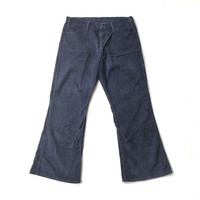 Vintage 70s Levis #1 Talon 42 Bootcut Bell Bottom Corduroy Pant Tag: Levis size fit w 34 manual measurement waist :- 17 inches Lenght (outseam ) :- 39 inches (Inseam) :-28 inches Thigh :- 13 inches Front rise:- 12 inches Leg opening:- 10.5 inches condition: used condition 8/10, got defect near left hip area. (please refer photo) Main color;- navy Additional: ●All Measurements were been measured flat on the floor. ●Please don't expect this item condition is 100% like new unless we have mention it. ●Please do not hesitate to contact us if you have any inquiries.Its our great pleasure to have conversation with customers. ●no return & refund if its do not meet your demand, please look carefully on details given. SHIPPING & HANDLING INFORMATION : # we shipped worldwide except ISRAEL. It's safe and you will be given tracking number for all item # we shipped items within 48 hours after receiving a cleared payment on Pay Pal (except for public holidays and weekends) and please do make sure your address is correct. # Please leave us your contact phone number, as the shipping company always need the phone number to help delivering. # we do offer combine shipping to save on postage cost. Do please contact us for combine postage after final purchases for combine shipping. Shipping cost: 1) DHL EXPRESS : $36 (ETA 3-5 DAYS TO ARRIVE) (PLEASE REQUEST IF THE ITEM NEEDED TO BE EXPEDITED - ADDITIONAL COST REQUIRED;, UNLESS, WE USED REGISTERED MAIL SERVICE ) 2) REGISTERED MAIL INTERNATIONAL SERVICE : $20 (ETA 14-21 DAYS TO ARRIVE) Thank you very much for your visit