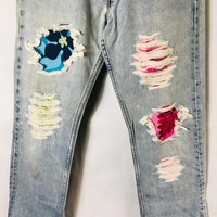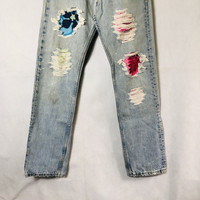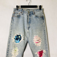 Vintage LEVI'S 501 USA x Surfer Dog Distress Denim Rebuild Jeans Tag: Levis for woman made in usa size stated w30 L32 manual measurement waist :- 15 inches Lenght (outseam ) :- 41.5 inches (Inseam) :- 32 inches Thigh :- 11 inches Front rise:- 11.5 inches Leg opening:- 7 inches condition: nice distressed rebuild design condition (please refer photo) Colour :- light blue Additional: ●All Measurements were been measured flat on the floor. ●Please don't expect this item condition is 100% like new unless we have mention it. ●Please do not hesitate to contact us if you have any inquiries.Its our great pleasure to have conversation with customers. ●no return & refund if its do not meet your demand, please look carefully on details given. SHIPPING & HANDLING INFORMATION : # we shipped worldwide except ISRAEL. It's safe and you will be given tracking number for all item # we shipped items within 48 hours after receiving a cleared payment on Pay Pal (except for public holidays and weekends) and please do make sure your address is correct. # Please leave us your contact phone number, as the shipping company always need the phone number to help delivering. # we do offer combine shipping to save on postage cost. Do please contact us for combine postage after final purchases for combine shipping. Shipping cost: 1) DHL EXPRESS : $36 (ETA 3-5 DAYS TO ARRIVE) (PLEASE REQUEST IF THE ITEM NEEDED TO BE EXPEDITED - ADDITIONAL COST REQUIRED;, UNLESS, WE USED REGISTERED MAIL SERVICE ) 2) REGISTERED MAIL INTERNATIONAL SERVICE : $18 (ETA 14-21 DAYS TO ARRIVE) Thank you very much for your visit