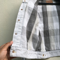 Vintage Levi’s Denim Trucker Jacket Plaid Blanket Lining Tag: Levi's Strauss made in usa measurements were armpit 18.5 inches, top of back collar to bottom 21.5 inches, Shoulder to shoulder width 15 inches sleeve length from shoulder 22 inches (laying flat) condition: good vintage condition, got few rusty patina marks button, and few pinholes near sleeves (please refer photo)
