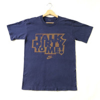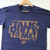 Rare! Talk To Dirty Me! Vintage 90s Nike Swoosh Single Stitch Tee Tag: Grey tag (ripoff) Size fits Medium measurements: armpit 19inches, top of back collar to bottom 28 inches Shoulder width 18 inches Do compare the measurement with your garments before purchased condition: good condition 8/10, (please zoom extra photo given) main colour: navy Additional: ●All Measurements were been measured flat on the floor. ●Please don't expect this item condition is 100% like new unless we have mention it. ●Please do not hesitate to contact us if you have any inquiries.Its our great pleasure to have conversation with customers. ●no return & refund if its do not meet your demand, please look carefully on details given. SHIPPING & HANDLING INFORMATION : # we shipped worldwide except ISRAEL. It's safe and you will be given tracking number for all item # we shipped items within 48 hours after receiving a cleared payment on Pay Pal (except for public holidays and weekends) and please do make sure your address is correct. # Please leave us your contact phone number, as the shipping company always need the phone number to help delivering. # we do offer combine shipping to save on postage cost. Do please contact us for combine postage after final purchases for combine shipping. Shipping cost: 1) DHL EXPRESS : $36 (ETA 3-5 DAYS TO ARRIVE) (PLEASE REQUEST IF THE ITEM NEEDED TO BE EXPEDITED - ADDITIONAL COST REQUIRED;, UNLESS, WE USED REGISTERED MAIL SERVICE ) 2) REGISTERED MAIL INTERNATIONAL SERVICE : $15 (ETA 14-21 DAYS TO ARRIVE) Thank you very much for your visit