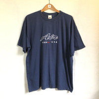 Rare!! Vintage 90s Nike Air Center Swoosh Embroidery Tee Tag: Nike Made in usa Size state Xl measurements were armpit 23.5 inches, top of back collar to bottom 29 inches, Shoulder width 22 inches condition: used 8/10 , (at back got mark/flaw lplease refer photo) main colour : navy (slightly fades) Additional: ●All Measurements were been measured flat on the floor. ●Please don't expect this item condition is 100% like new unless we have mention it. ●Please do not hesitate to contact us if you have any inquiries.Its our great pleasure to have conversation with customers. ●no return & refund if its do not meet your demand, please look carefully on details given. SHIPPING & HANDLING INFORMATION : # we shipped worldwide except ISRAEL. It's safe and you will be given tracking number for all item # Due to covid pandemic all Item will be shipped by DHL Express in 3 to 5 business days after received cleared payment. # Expect it to reach you in 5-10 business days after item been shipped. # Don’t worry about customs tax or fees. I usually declare all items as ‘Gift’ & declare value of item lower than original price. Please leave your phone number on the note when making an order, as a shipping company needed for delivery process. Thank you. Do check out my store for more stuff!! Thank you so much for your visit!!!