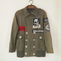 Rare Jacket Punk Army Style Patch Designer by Algonquins Size caretag: missing Measurement (inch): Armpit to armpit= 19" Back collar to hem=27" Sleeves(from shoulder): = 19'' Material = olive green cotton army Condition : Used But in nice good condition, 9/10 this item that has been used or worn previously. Additional: ●All Measurements were been measured flat on the floor. ●Please don't expect this item condition is 100% like new unless we have mention it. ●Please do not hesitate to contact us if you have any inquiries.Its our great pleasure to have conversation with customers. ●no return & refund if its do not meet your demand, please look carefully on details given. SHIPPING & HANDLING INFORMATION : # we shipped worldwide except ISRAEL. It's safe and you will be given tracking number for all item # we shipped items within 48 hours after receiving a cleared payment on Pay Pal (except for public holidays and weekends) and please do make sure your address is correct. # Please leave us your contact phone number, as the shipping company always need the phone number to help delivering. # we do offer combine shipping to save on postage cost. Do please contact us for combine postage after final purchases for combine shipping. Shipping cost: 1) DHL EXPRESS : $36 (ETA 3-5 DAYS TO ARRIVE) (PLEASE REQUEST IF THE ITEM NEEDED TO BE EXPEDITED - ADDITIONAL COST REQUIRED;, UNLESS, WE USED REGISTERED MAIL SERVICE ) 2) REGISTERED MAIL INTERNATIONAL SERVICE : $20 (ETA 14-21 DAYS TO ARRIVE) Thank you very much for your visit